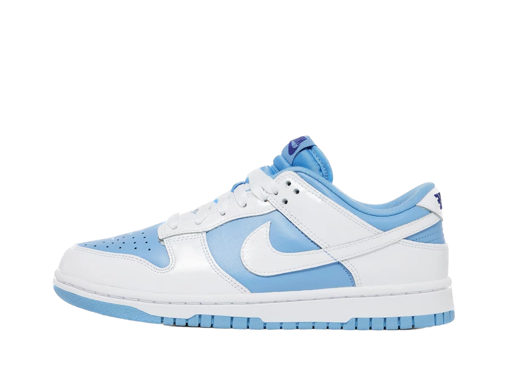 This Dunk Low features the renowned University of North Carolina (UNC) blue not on the overlays but on the smooth leather base. “Colourless” white takes over on the toe cap, the foxing and even the profile Swooshes on both the medial and lateral sides of the shoe. Dark blue on UNC blue Nike branding sits on the tongue while embroidered navy blue Nike text branding adorns the all-white heel tab. A clean white midsole and a UNC blue rubber outsole finish off the look of these kicks.
